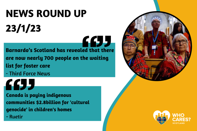 Catch up with last week’s care-related news, all in one place on our website. In this week’s news Barnardo’s Scotland has revealed there are now nearly 700 people on the waiting list for foster care and Canada is paying indigenous communties $2.8 billion for ‘cultural genocide’ in children’s homes.