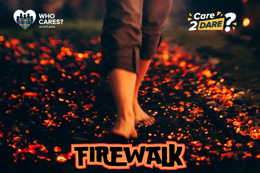 Face your fears and brave the burning coals in support of Care Experienced people by taking part in our November Care2Dare? Firewalk. Once you sign up you will receive a pre-Firewalk training session from an expert, before completing what previous walkers have called a transcendent experience.